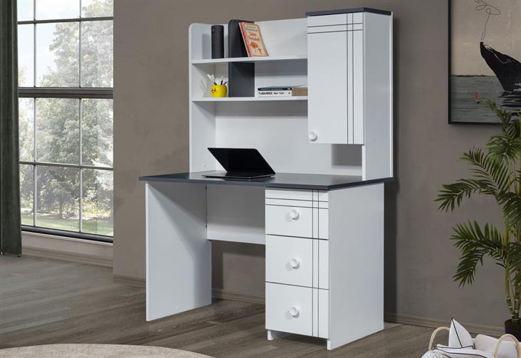 Çalışma masası 3 çekmece, raf ve dolaptan oluşmaktadır.