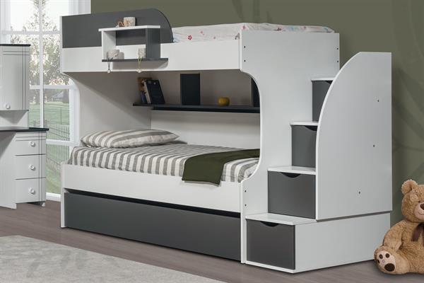 Hem merdiven hem de depolama alanı olarak kullanabileceğiniz 2 tane menteşe kapaklı 2 tane raylı çekmece mevcuttur.
