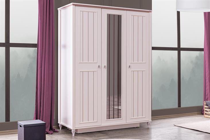 Takım İçeriği : 1 adet 3 Kapaklı Dolap + 1 adet Karyola ve 1 adet Komodinden oluşmaktadır. Diğer takım modülleri "Takım İçeriğini Değiştir " kısmından Ekle/Çıkar ile eklenip çıkarılabilir.